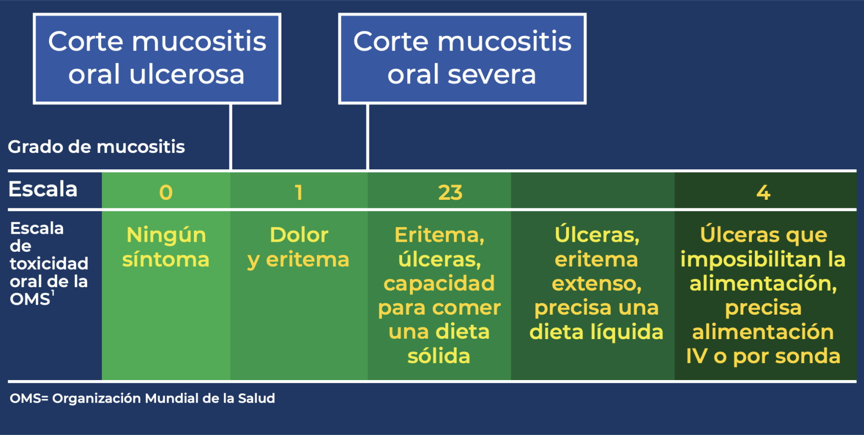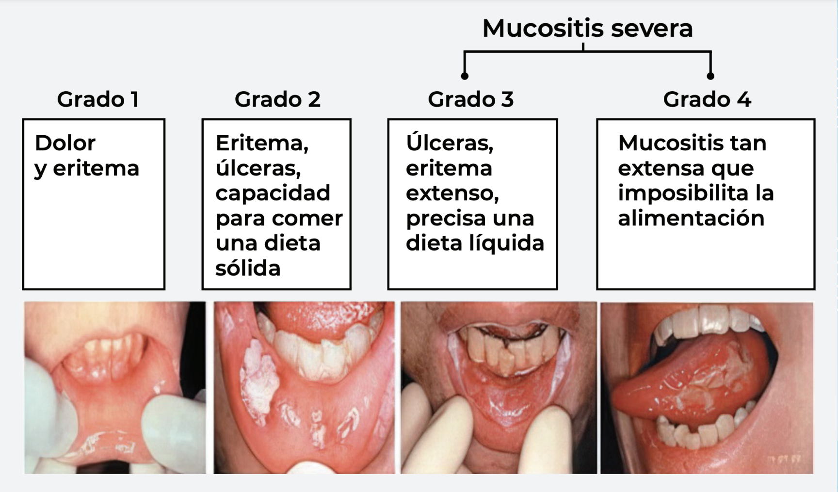 La mucositis oral es una enfermedad autolimitada que sigue un curso bastante predecible. La duración y la gravedad pueden variar en gran medida en función de la terapia específica contra el cáncer. Después de la curación, no hay síntomas residuales o consecuencias de la mucositis oral. Es importante que le informe a su médico o al personal de enfermería en cuanto le aparezca cualquier molestia en la boca para que se puedan iniciar las medidas apropiadas a fin de garantizar que pueda tolerar este efecto secundario de la terapia.